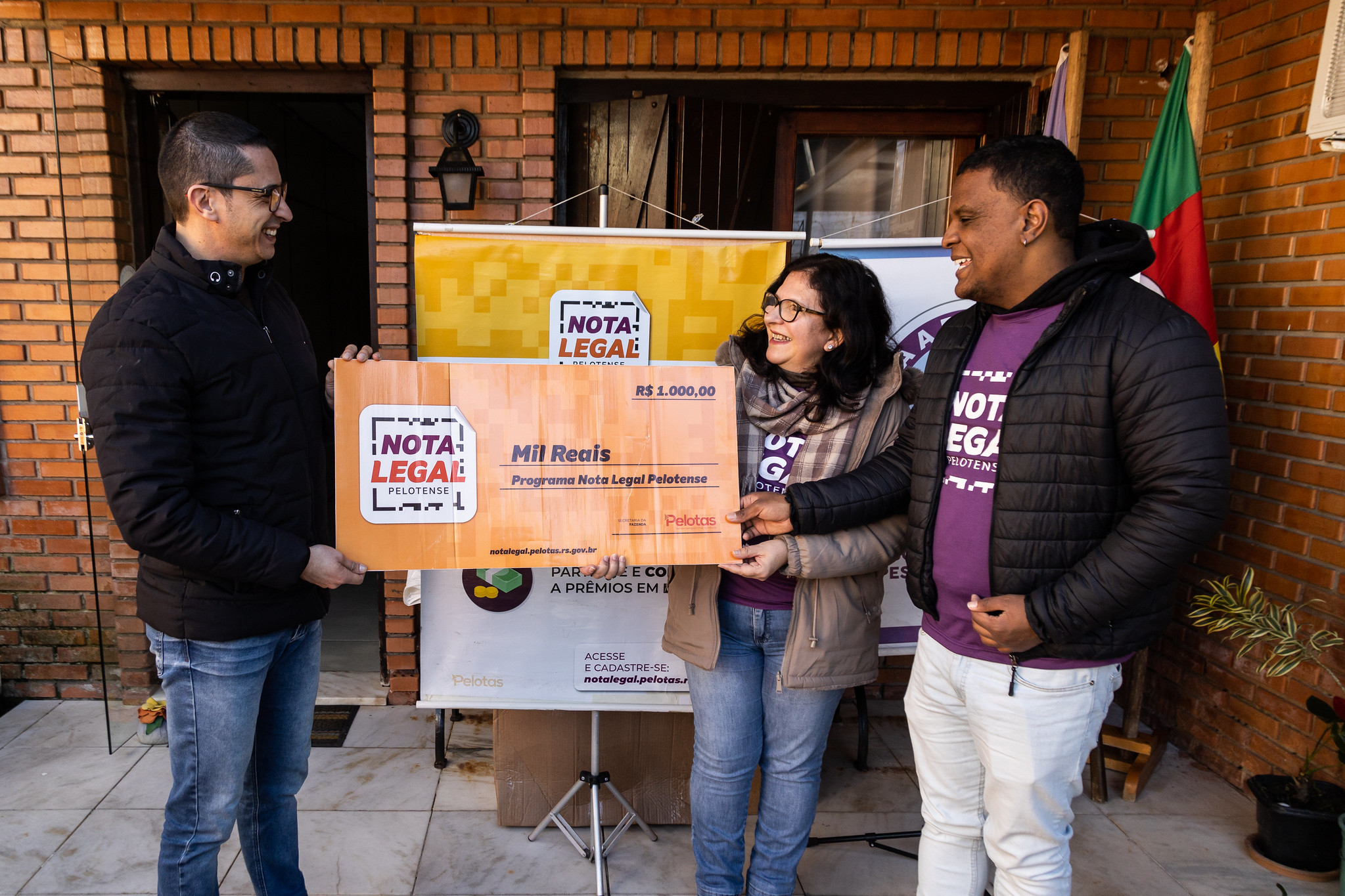 A Prefeitura de Pelotas fez, na manhã desta terça-feira (2), a entrega de um cheque simbólico no valor de R$ 1 mil para a Associação de Apoio a Pessoas Câncer (Aapecan). A entidade assistencial foi indicada a receber o valor pelo ganhador do prêmio principal da 17ª edição do programa Nota Legal Pelotense, Reysel Reinehr Mirapalhete.