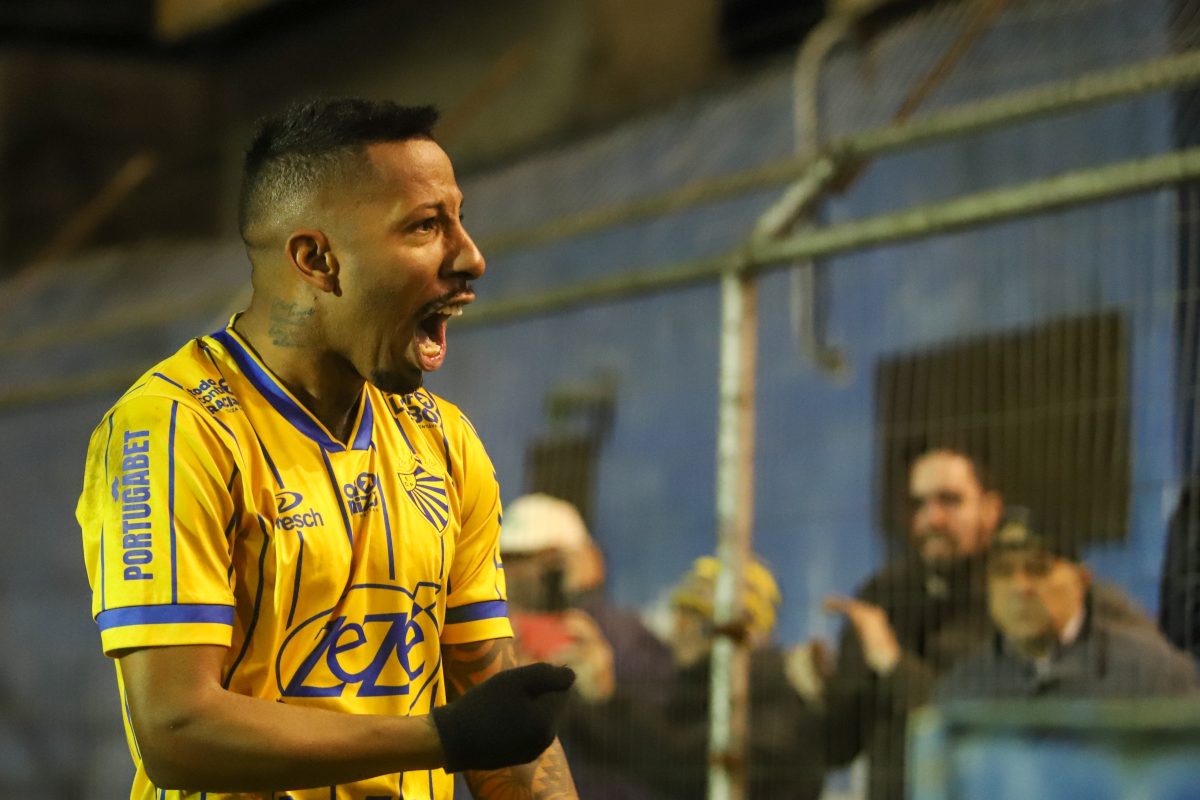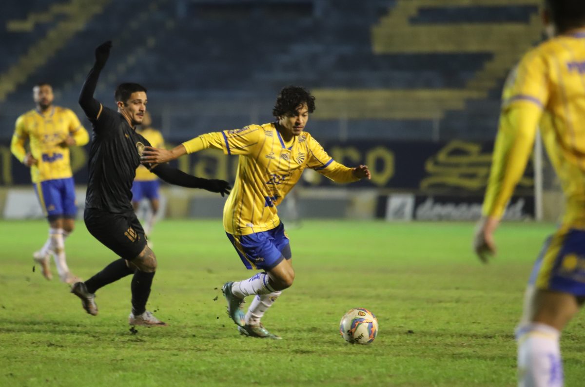 49’: Warlei desarma o defensor, ganha dividida e avança. O camisa 9 solta uma bomba de fora da área e acerta o travessão, quase marcando um golaço.