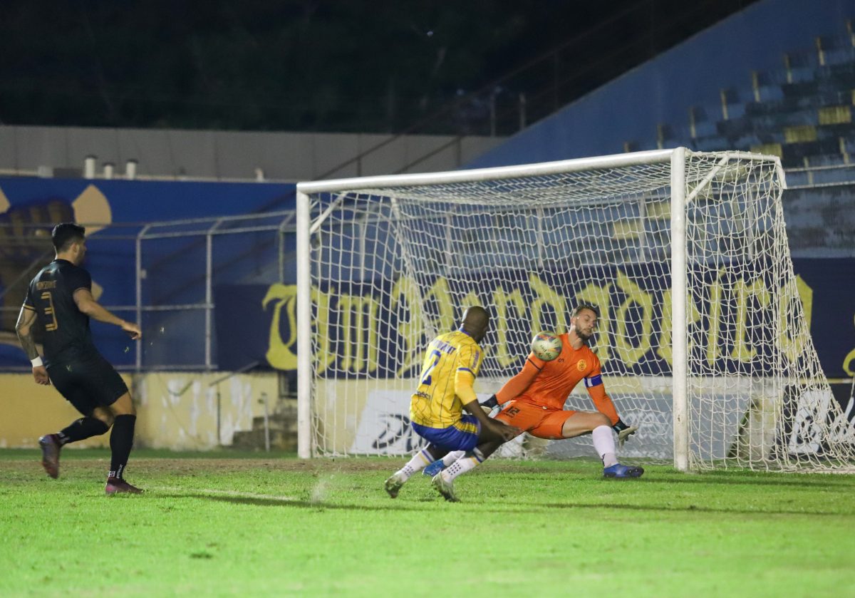 30’: Fauver Frank recebe na intermediária e finaliza sem dificuldades para Mateus.