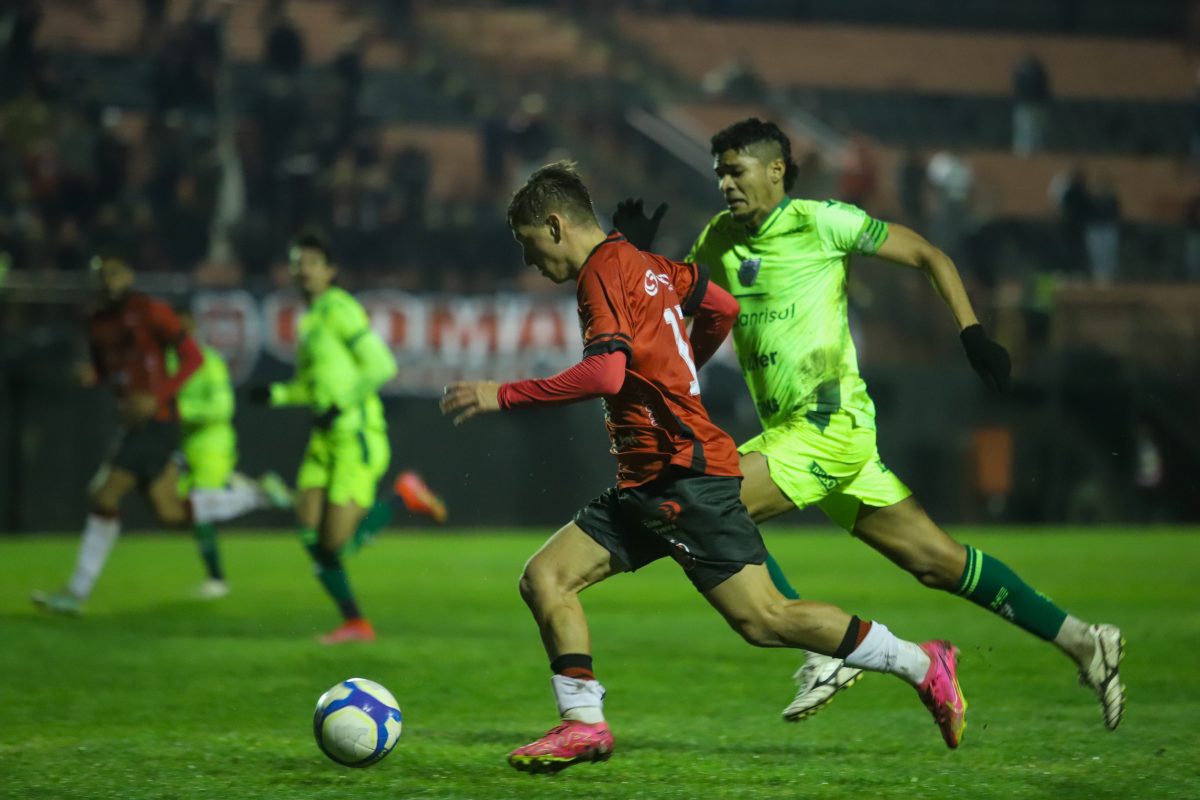2’: Matheus Guimarães faz ótima jogada individual pelo lado direito da área e ajeita para Rafael Holstein, mas o meia pega mal na bola e perde ótima chance.