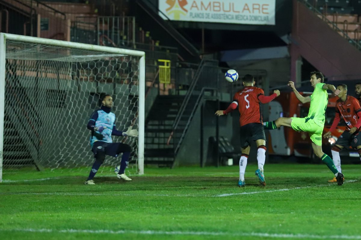 1’: Gol do Brasil. Bola na área, a zaga do Avenida afasta parcialmente, mas a bola sobra para Adriano Klein. O extrema acerta um chute forte, sem chances para Rafael Pin: 2 a 0.