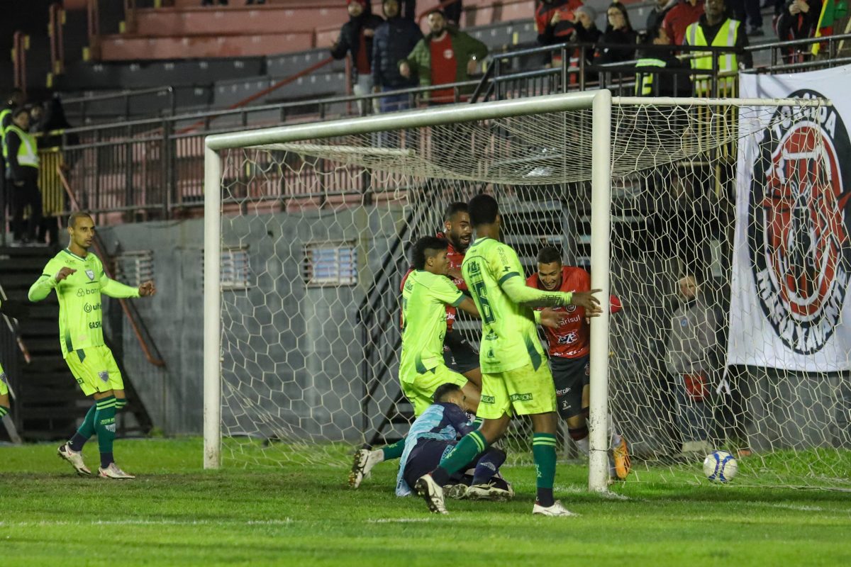 23’: Bruno Camilo recebe na área, tenta o chute de primeira e a bola passa perto do gol de Thierry.