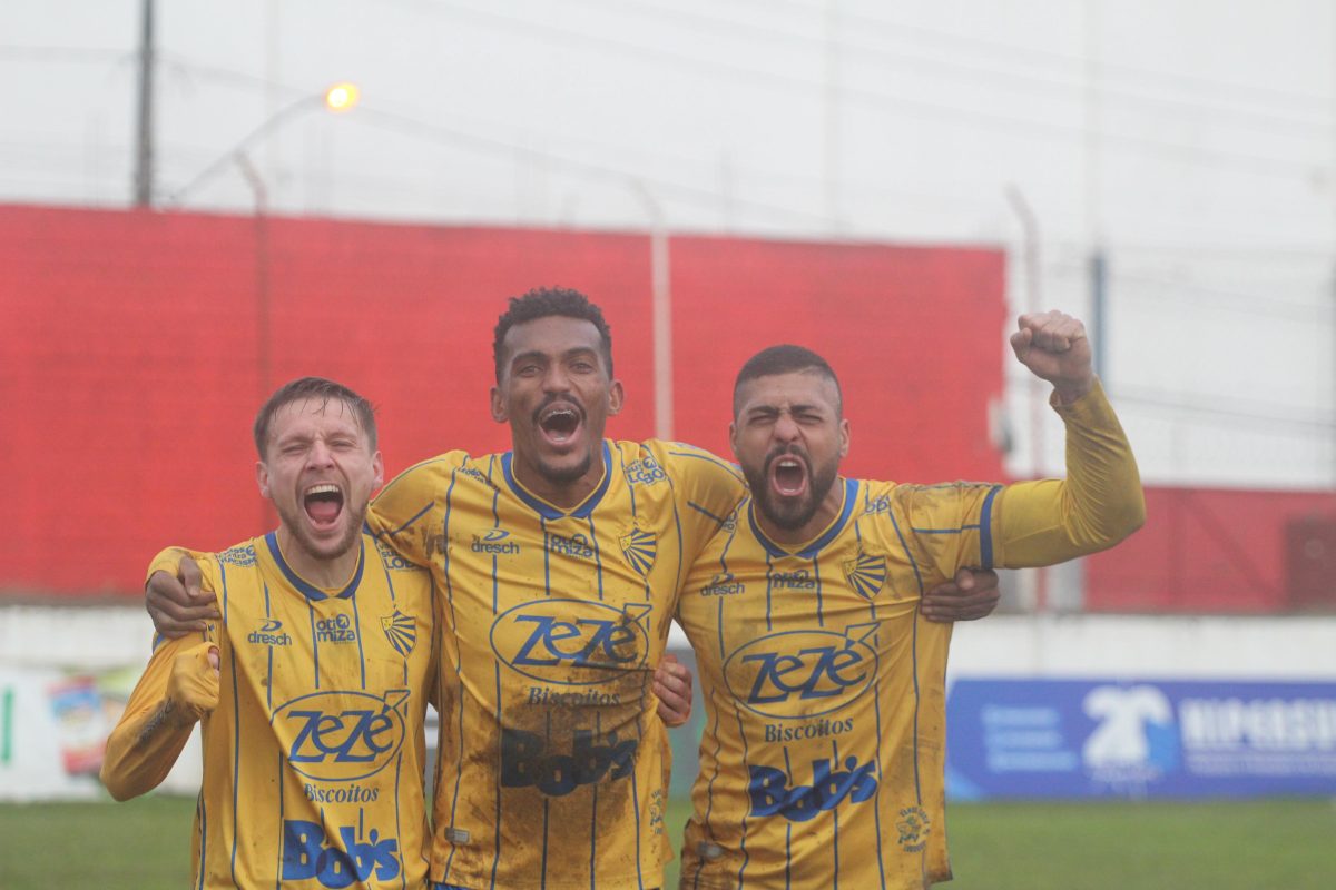 27’: Gol do Pelotas. Fauver Frank cruza rasteiro da direita e Clayton, de novo ele, aparece na pequena área para empatar. Reviravolta em sete minutos em Santa Maria.
