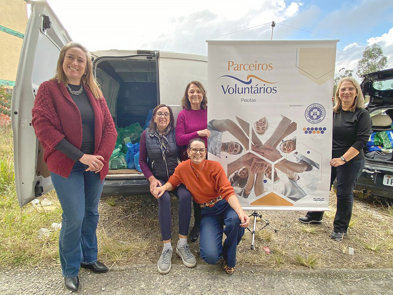 A Associação Comercial de Pelotas (ACP) utilizou de seu braço social em conjunto com a ONG Parceiros Voluntários de Pelotas, para receber três carretas abarrotadas de donativos.