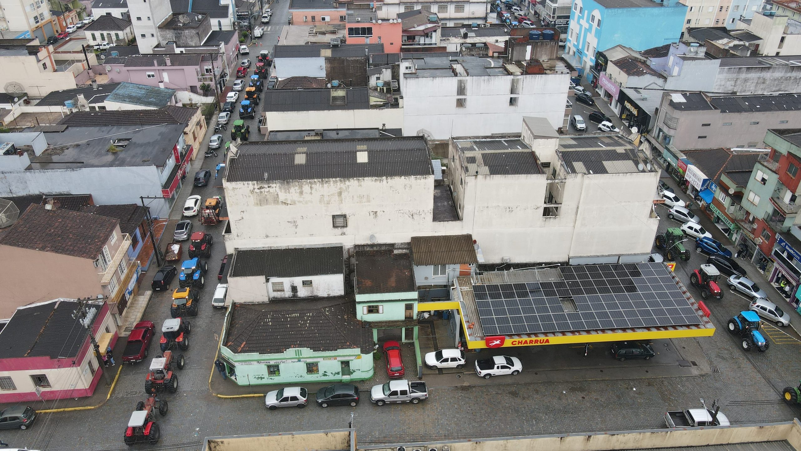 Centenas de tratores coloriram as ruas de Canguçu em uma mobilização que se estendeu por horas. Os maquinários percorreram ruas movimentadas no município, como a General Osório, e trancaram a Júlio de Castilhos durante a tarde, onde pararam em frente ao Banco do Brasil para uma manifestação simbólica em alusão às dificuldades para o pagamento de financiamentos.