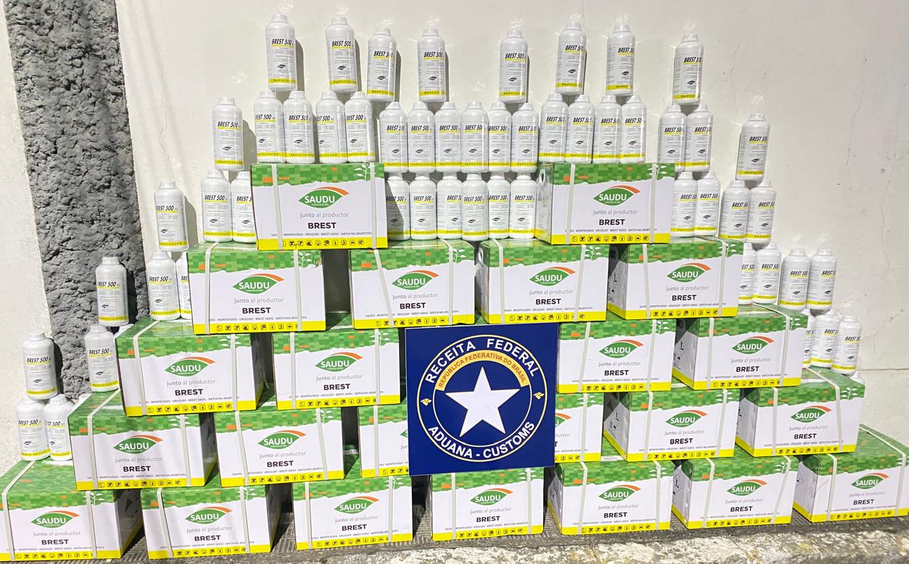 Ação conjunta entre a Receita Federal e a Brigada Militar em Pelotas, apreendeu um carro carregado com 248 frascos de agrotóxicos uruguaios que ingressaram ilegalmente no Brasil na noite de domingo (11).