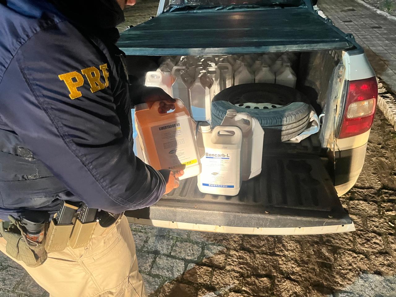 Um homem foi preso em Pedro Osório por carregar ilegalmente 270 litros de agrotóxicos de origem estrangeira. A Polícia Rodoviária Federal realizou a abordagem a uma caminhonete que estava carregada com a carga contrabandeada.
