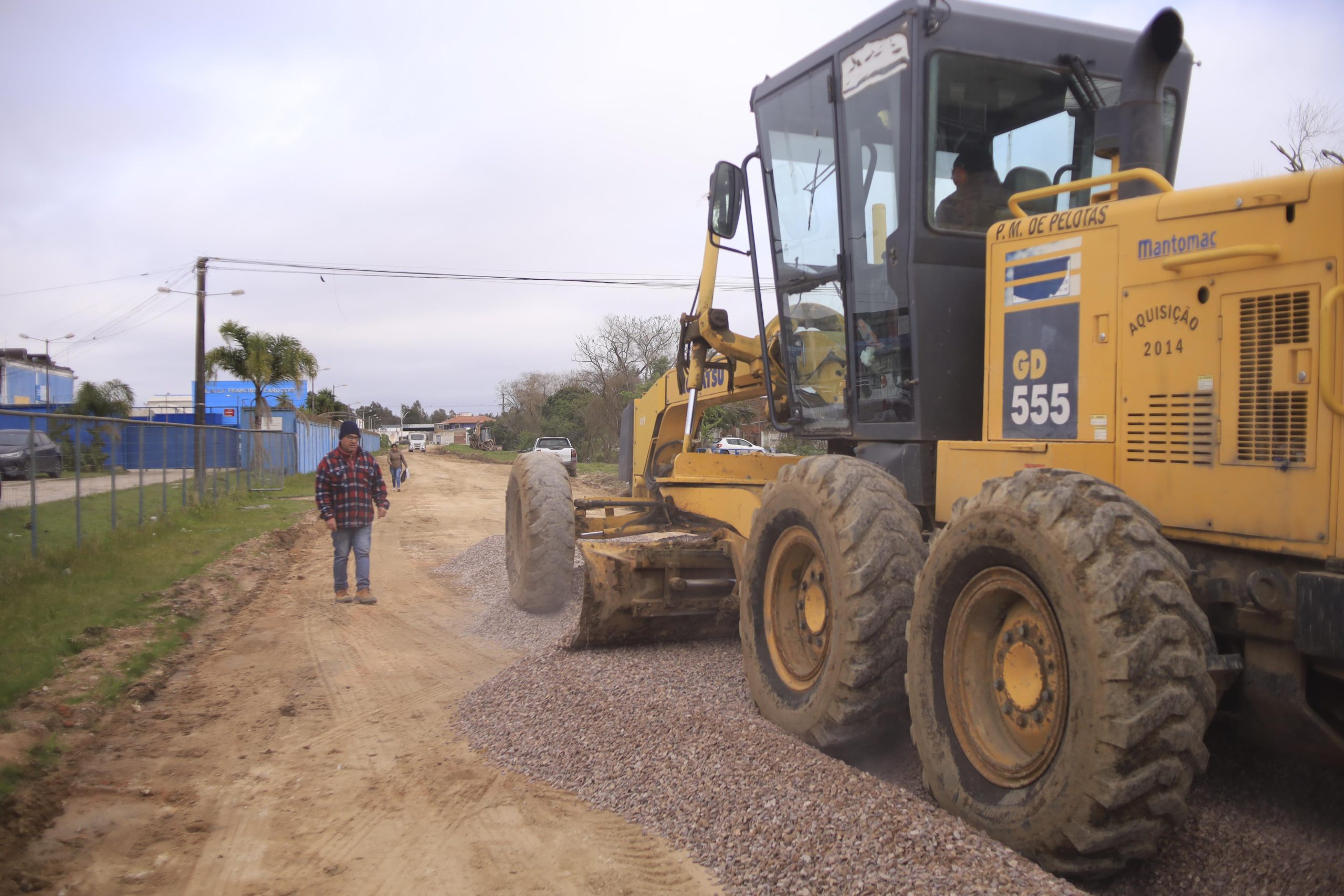 A prefeitura de Pelotas começou, nesta segunda-feira (26), a colocação de brita em frente à Escola Municipal de Ensino Fundamental (Emef) Francisco Caruccio, na avenida Leopoldo Brod, bairro Pestano.
