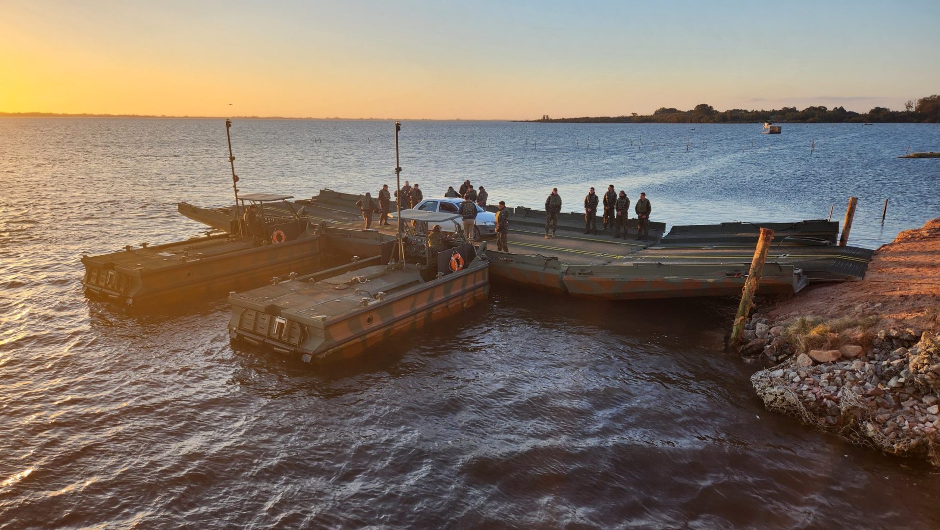 De acordo com o ordenador da Defesa Civil, Anderson Montiel, a balsa definitiva que será instalada na localidade já chegou em Rio Grande. A nova balsa veio de Porto Alegre via Lagoa dos Patos e está aguardando “calado”, altura/profundidade suficiente de água, para poder acessar o local.