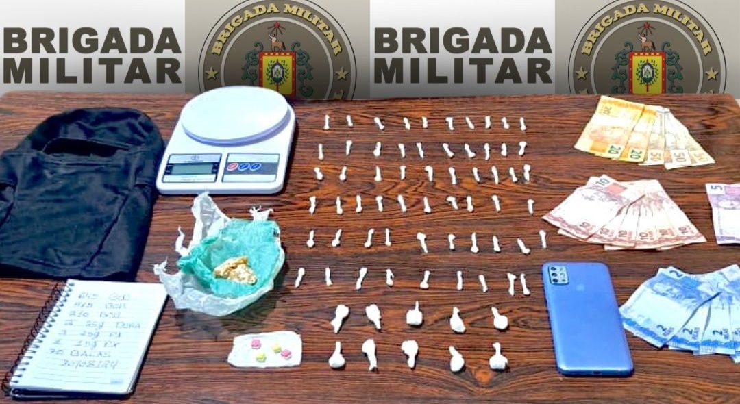 Foram apreendidas 61 porções de crack, dez porções de cocaína, quatro comprimidos de ecstasy, um celular, uma balança, uma balaclava e R$ 277,00. O homem preso foi encaminhado à Delegacia de Polícia, assim como os materiais apreendidos para os devidos registros.