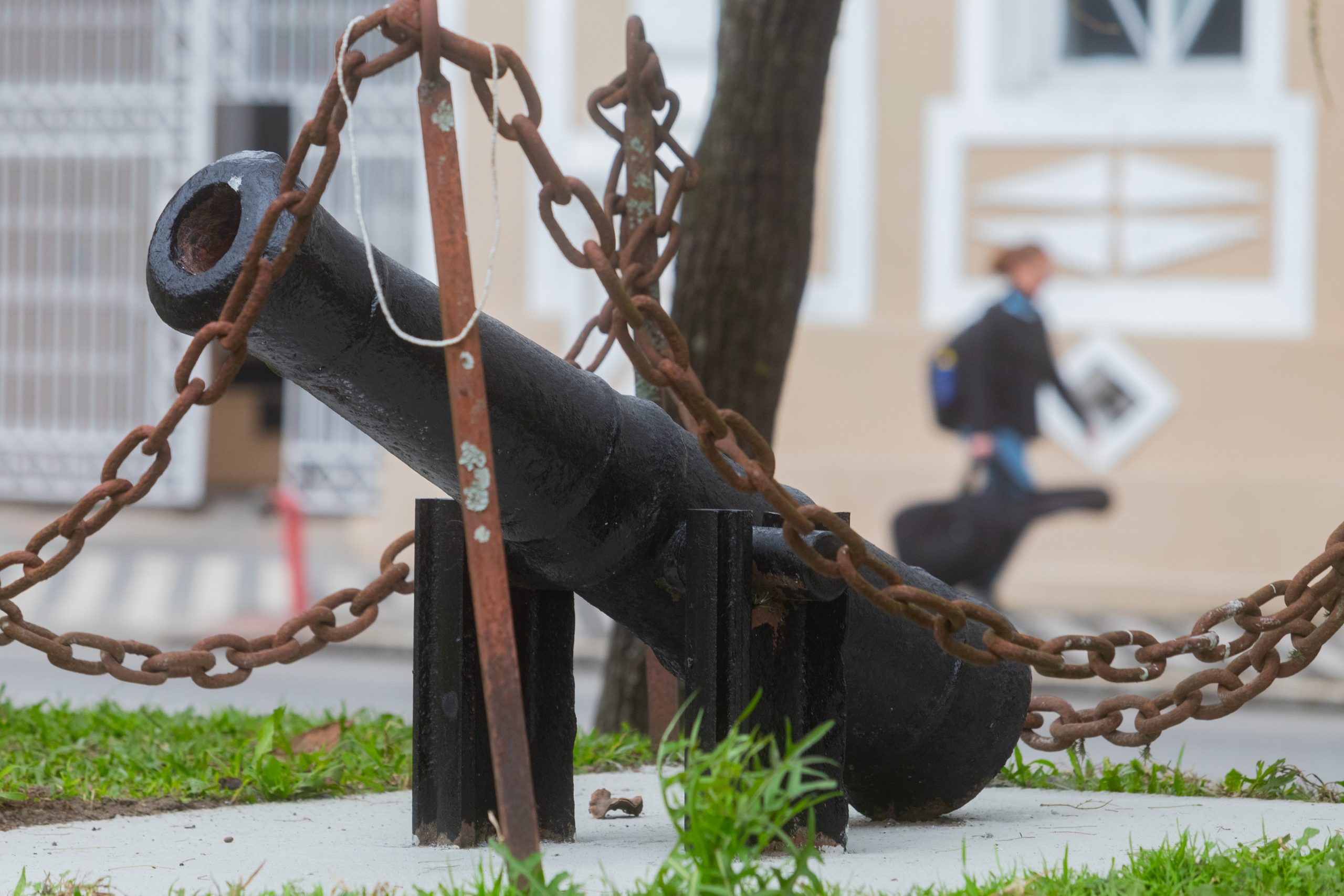 Monumento do canhão, em frente ao quartel do 4ºBPM foi recuperado após sofrer ato de vandalismo. (Foto: Jô Folha)
