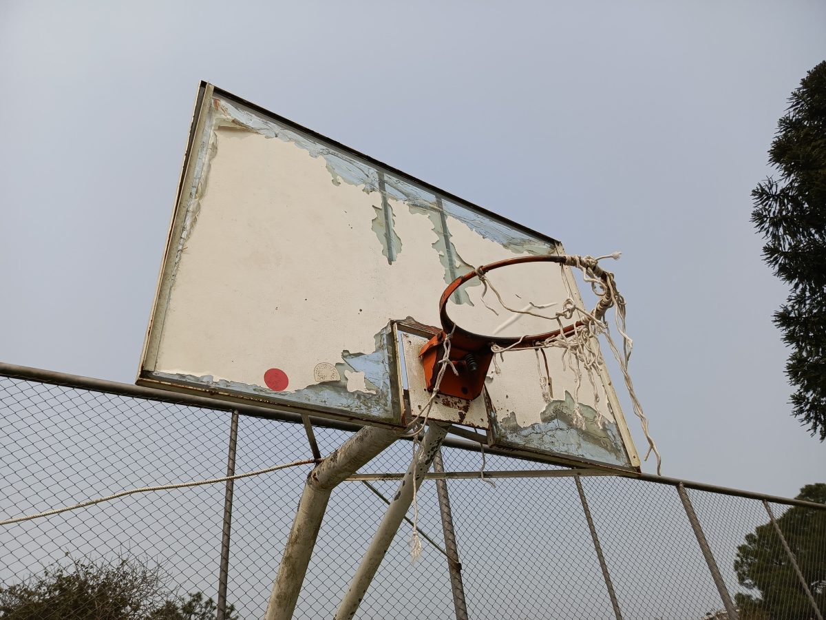 Uma das tabelas está sem o aro, impedindo a disputa de um jogo de basquete 5x5 (Foto: Fernando Rascado)