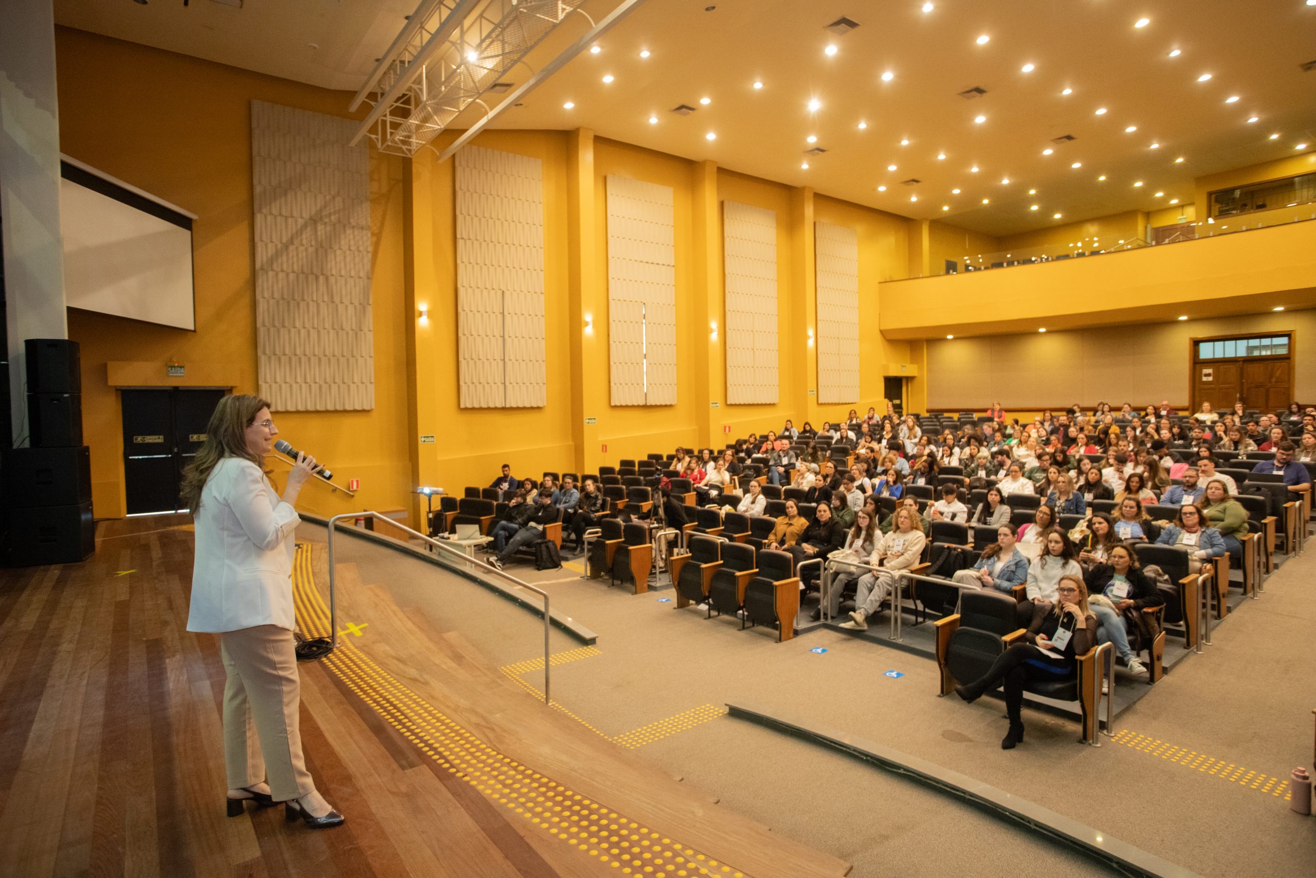 A neuropsicopedagoga Mariangela Tessmann, 53 anos, trabalha com crianças com Transtorno do Espectro Autista (TEA) e atípicas. Participando do evento como ouvinte, Mariangela vê com bons olhos a reunião de profissionais tão capacitados em um só evento disponível para o público.