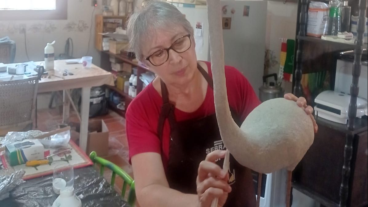 Até hoje não tive nenhum projeto desafiador. Para fazer as espécies, eu pesquiso no Google. Através das imagens das aves, eu produzo os bichinhos. As aves que eu mais faço são cardeais, saíra-sete-cores, garças, quero-queros. Entre os mamíferos, é só a capivara que faço. Gosto mesmo de modelar as aves, de qualquer tipo. Inclusive já fizemos vários trabalhos para fora do Rio Grande do Sul. Já mandamos para o Rio de Janeiro, São Paulo e também Minas Gerais.