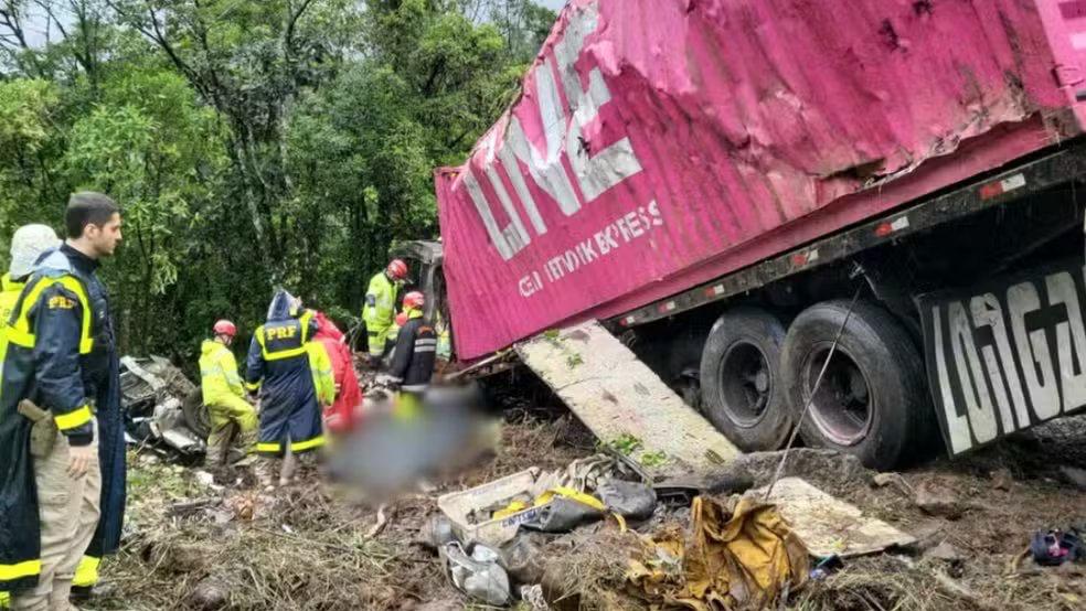 Nicollas Otilio Lima, 30 anos, motorista da carreta que colidiu na traseira da van na noite de domingo (20), na BR-376, quilômetro 665, em Guaratuba, litoral do Paraná, prestou depoimento por videoconferência na tarde de terça-feira (22).