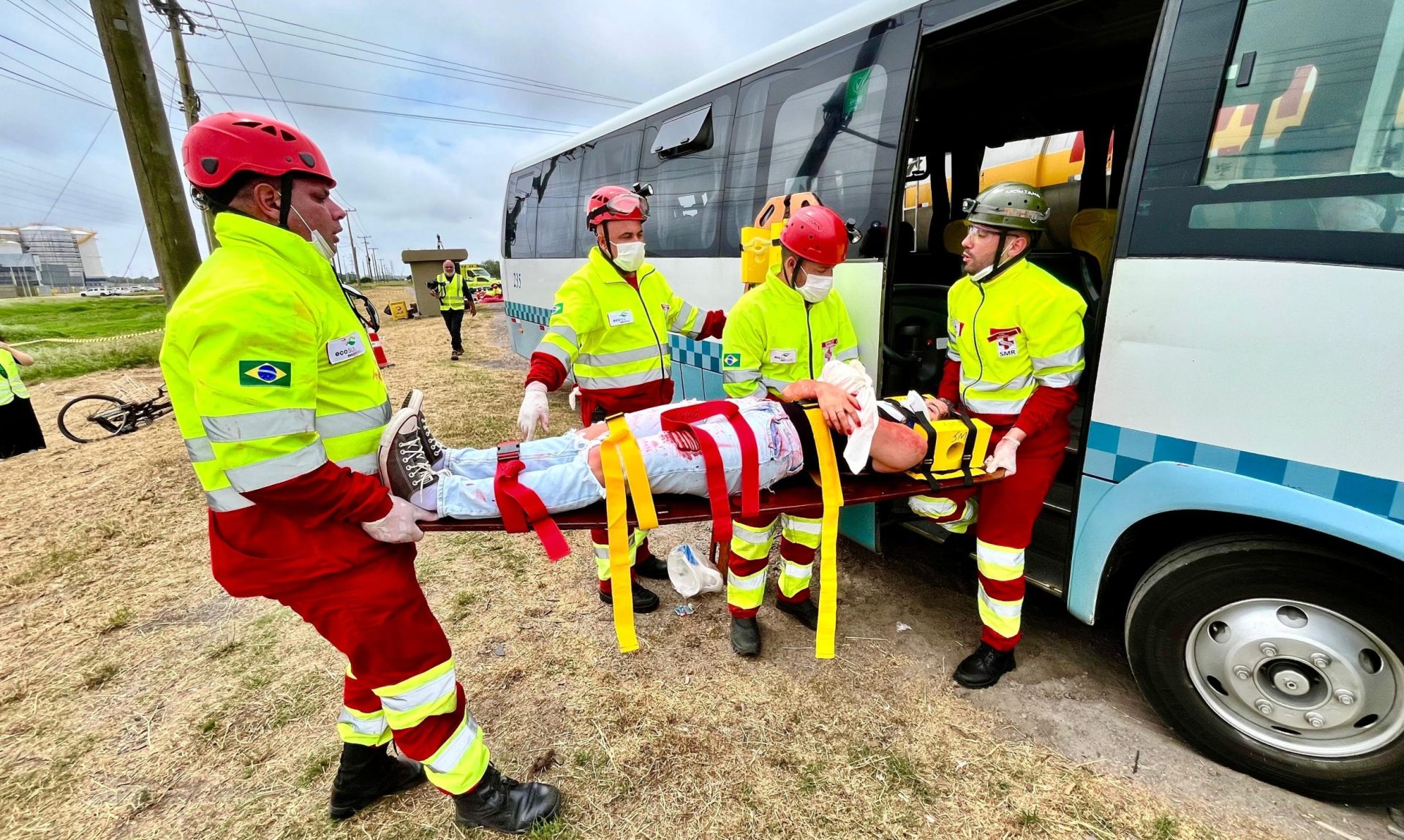 “Todos os anos, fazemos simulados de múltiplas vítimas e acidentes com produtos perigosos. Essa é uma qualificação para a nossa equipe”, explicou, ressaltando o diferencial de realizar pela primeira vez o simulado no Distrito Industrial de Rio Grande, dada a movimentação constante de produtos químicos na área portuária.