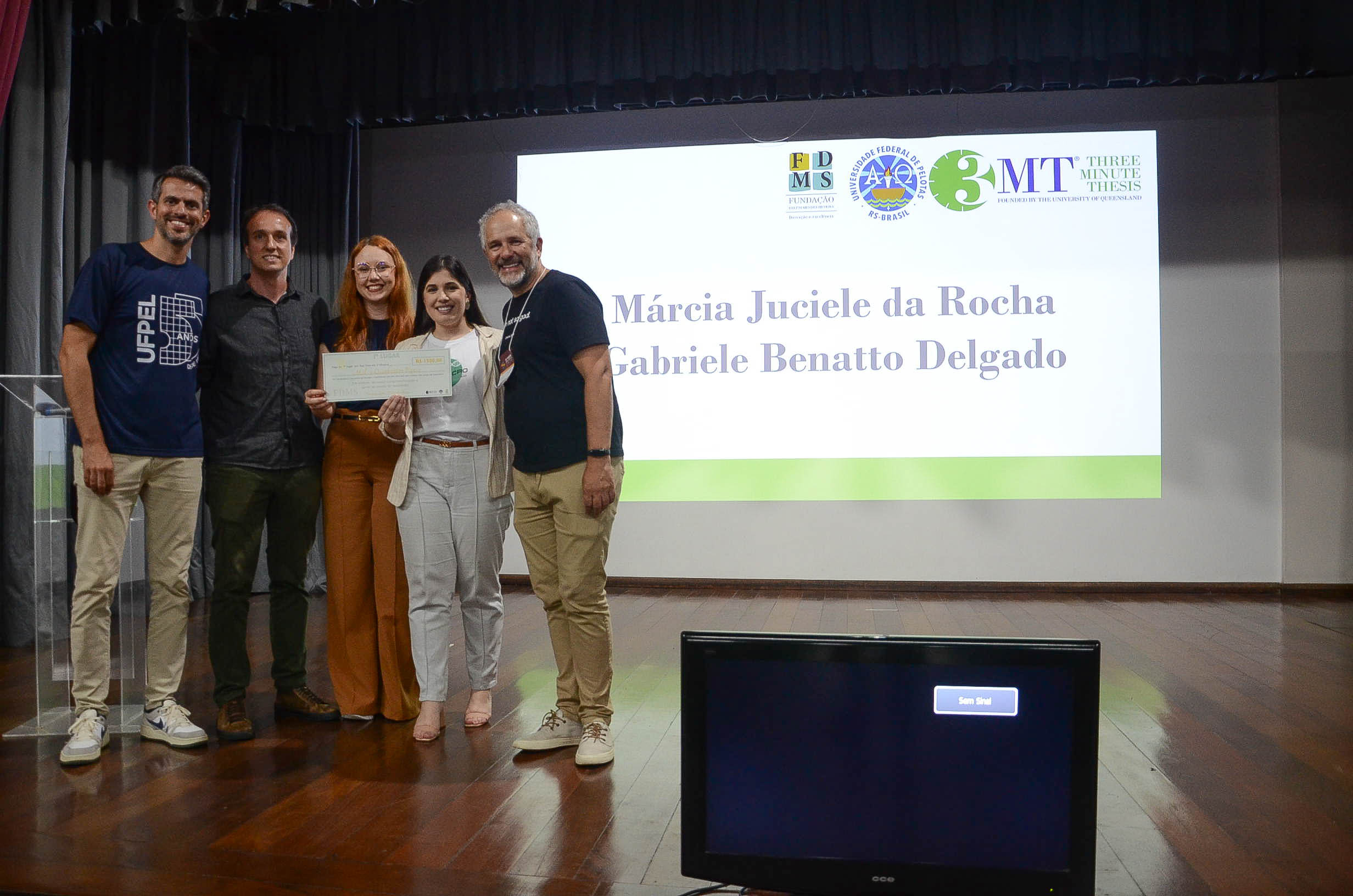 Quatro apresentações foram premiadas, todas de pesquisadoras mulheres. Na votação do júri, o primeiro lugar teve empate e Márcia Juciele da Rocha e Gabriele Benatto Delgado receberam premiações de R$ 1.500. A pesquisa apresentada por Márcia, que é doutoranda em Bioquímica e Bioprospecção, testa a utilização do efeito antidepressivo de um novo composto químico. Já o trabalho de Gabriele, que é doutoranda em Ciência e Tecnologia de Alimentos, estuda a resistência a antimicrobianos em uma bactéria presente em sushi e sashimi.