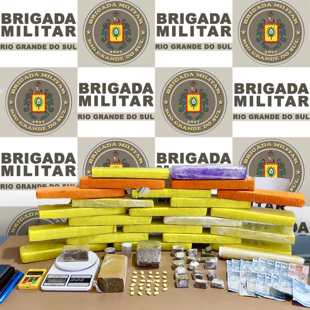 Policiais militares da Força Tática e Rocam do 4⁰ BPM prenderam em flagrante dois homens, de 18 e 29 anos, por tráfico de drogas no bairro Areal, em Pelotas.