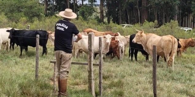 A Polícia Civil apreendeu, nesta quarta-feira (29), 23 bovinos na divisa entre Candiota e Pinheiro Machado. De acordo com os policiais da Delegacia de Polícia Especializada na Repressão aos Crimes Rurais e Abigeato (Decrab) de Bagé, os animais teriam sido furtados.
