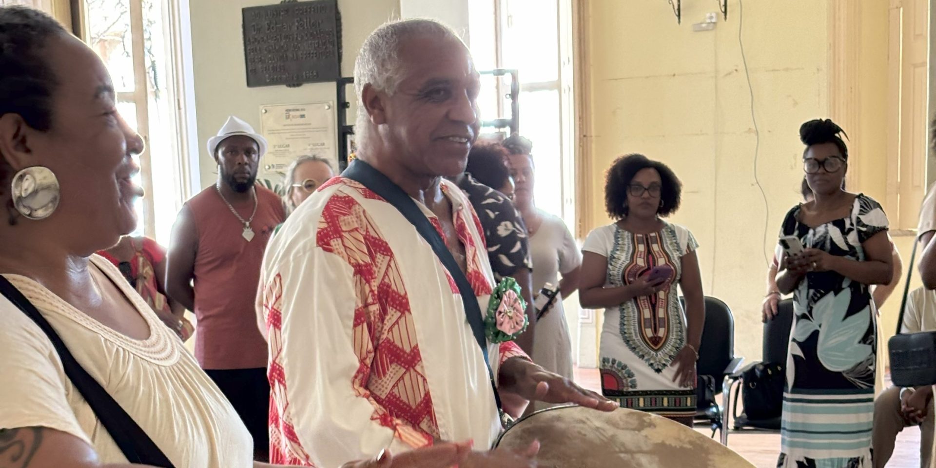 Eu sou fruto de uma política pública do governo federal. Em 2006, duas pessoas que hoje coordenam a Ação Griô Nacional, que se tornaram meus amigos, Lilian Pacheco e Márcio Caire, trouxeram uma pesquisa sobre os griôs africanos. O governo abraçou e aí escolheu mestres e mestras e griôs aprendizes. O trabalho enviado para que eu me tornasse um griô foi que eu mantivesse viva a cultura do tambor de sopapo, porque eu sempre vivi o Carnaval. Desde os 13 anos sou percussionista e, com essa idade, iniciei como ritmista de escola de samba. Hoje o tambor é a extensão do meu corpo, eu não consigo pensar em cultura sem o sopapo. Em Pelotas, fomos três mestres griôs, e eu, a Mestra Sirley (Amaro), e o saudoso Mestre Batista, começamos a fazer um trabalho junto. E aí eu comecei a entender o valor desse tambor.