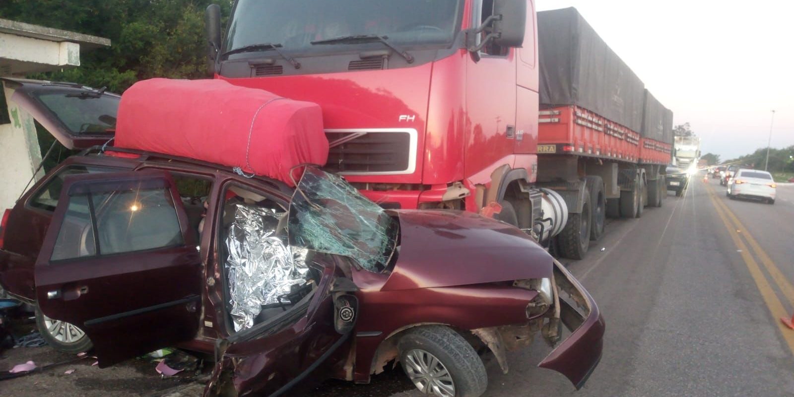 Colisão entre um veículo de passeio e uma carreta aconteceu próxima à entrada ao Capão do Leão