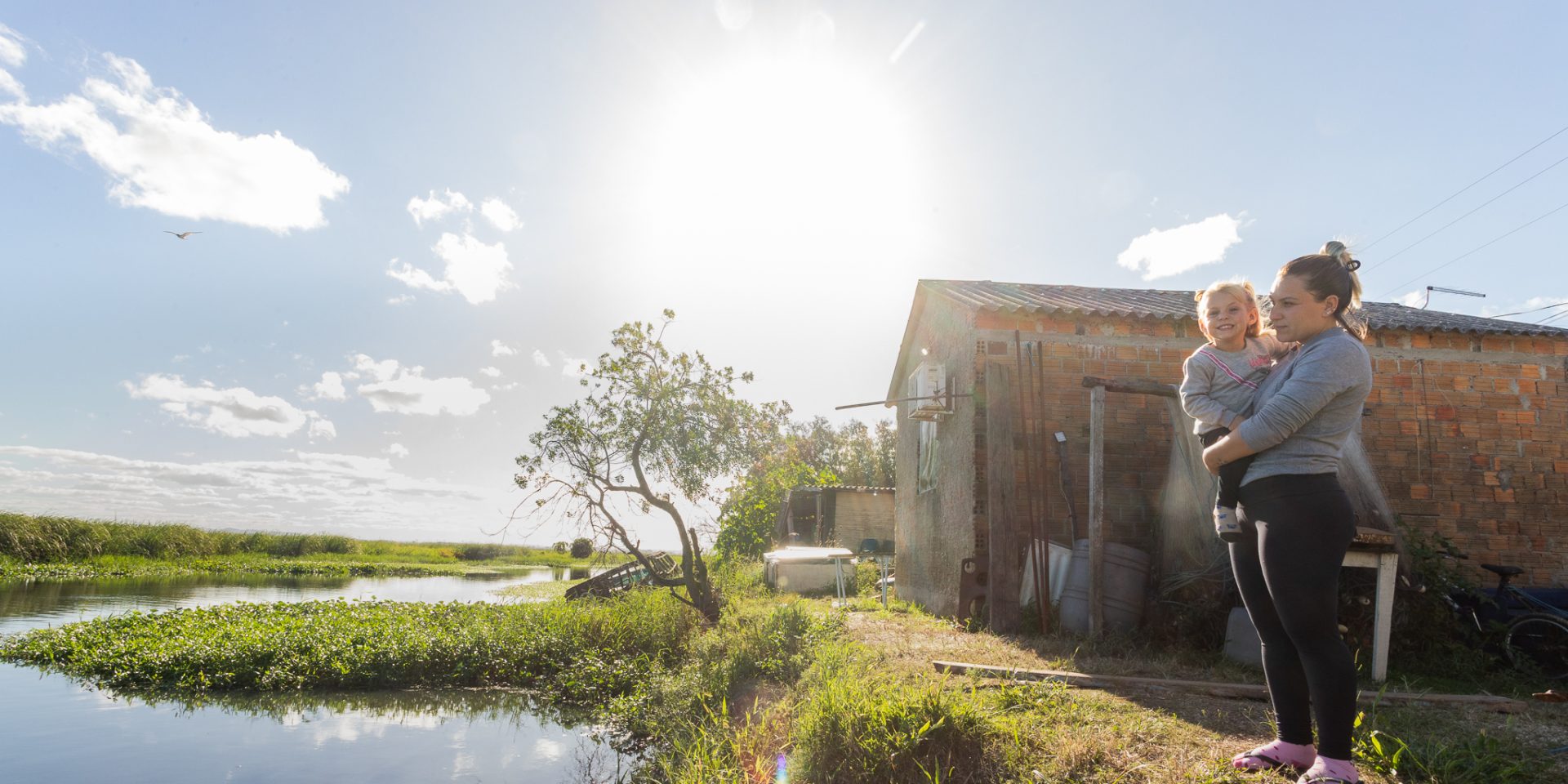 A dona de casa está entre as 22 mil pessoas atingidas pela enchente e registradas no CadÚnico. Beneficiária do Bolsa Família, utiliza o recurso para suprir as necessidades da filha. Além do benefício, a maior parte do sustento é obtido da pesca do marido. Por isso, não há perspectiva de mudança para uma moradia menos vulnerável às oscilações do nível do canal São Gonçalo. “A gente depende de morar na beira da água porque se não vamos colocar o barco onde?”, diz.