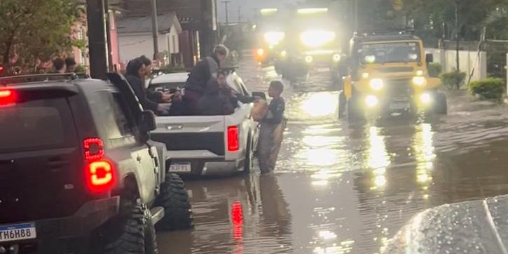 A enchente de maio do ano passado fez com que mais de 615 mil pessoas precisassem sair de casa no Rio Grande do Sul. Em Pelotas, centenas de famílias tiveram suas residências invadidas pela água e precisaram ser deslocadas para a casa de parentes ou para abrigos. Trabalho que foi desempenhado pelas forças de segurança da cidade e também por grupos de jipeiros, cujos veículos poderiam alcançar partes alagadas que outros não conseguiam.