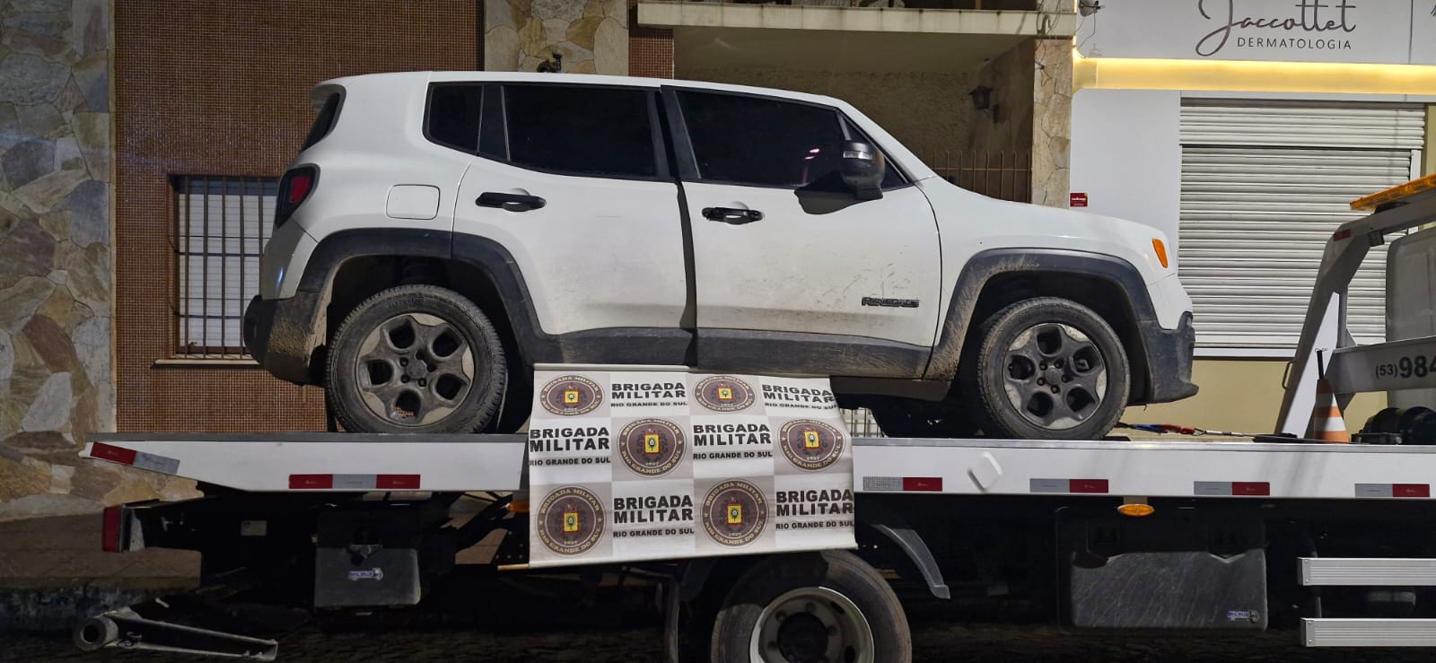 Após receber uma denúncia via 190, as equipes do 4º Batalhão de Polícia Militar (4º BPM) se deslocaram imediatamente para o local e, durante as averiguações, avistaram e abordaram um veículo Jeep Renegade de cor branca com dois indivíduos a bordo.
