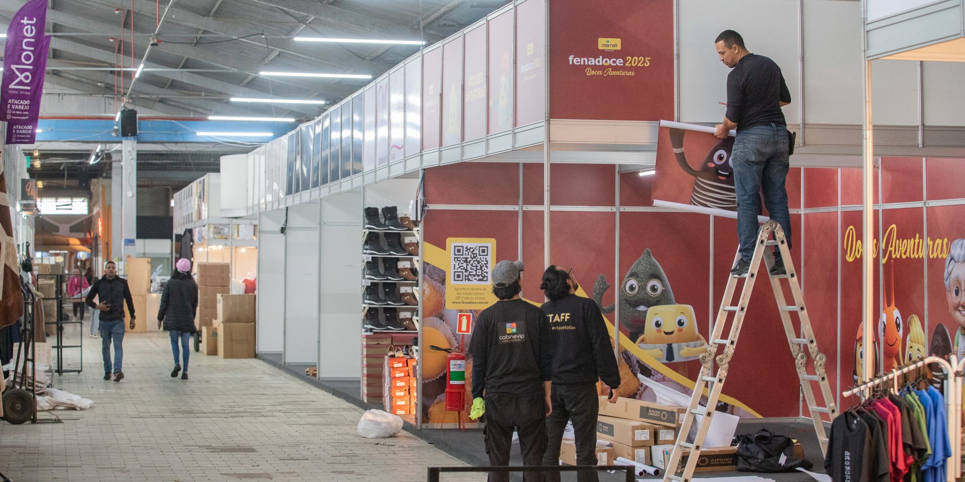 Nas últimas 24 horas antes da abertura, o ritmo de trabalho foi intenso nos pavilhões: montagem dos estandes, disposição dos produtos, conferência dos estoques, limpeza dos corredores e finalização dos espaços dedicados ao público infantil. Assim como adiantaram as baronesas, o espaço reservado à história de Pelotas, onde reinam as soberanas, só será revelado hoje e promete muitas surpresas. Para o trio, este ano será especial, pois elas passarão o título durante o evento, no dia 29, quando o público conhecerá a nova corte 2025/2026.