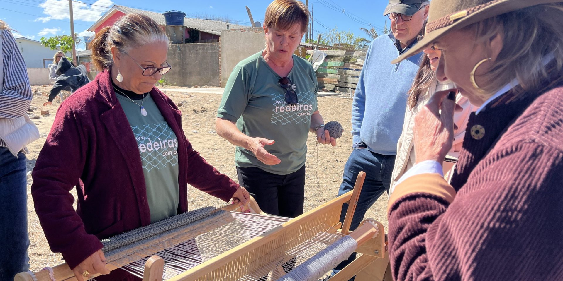Na visita à Z-3, os convidados conheceram todo o processo das redeiras: desde a coleta da rede reciclada (chamada de “avião”), passando pela lavagem, corte em fios e, por fim, a produção das peças. “Todas as nossas criações são feitas a várias mãos. Cada uma de nós realiza uma etapa”, explicou Rosani Schiller.