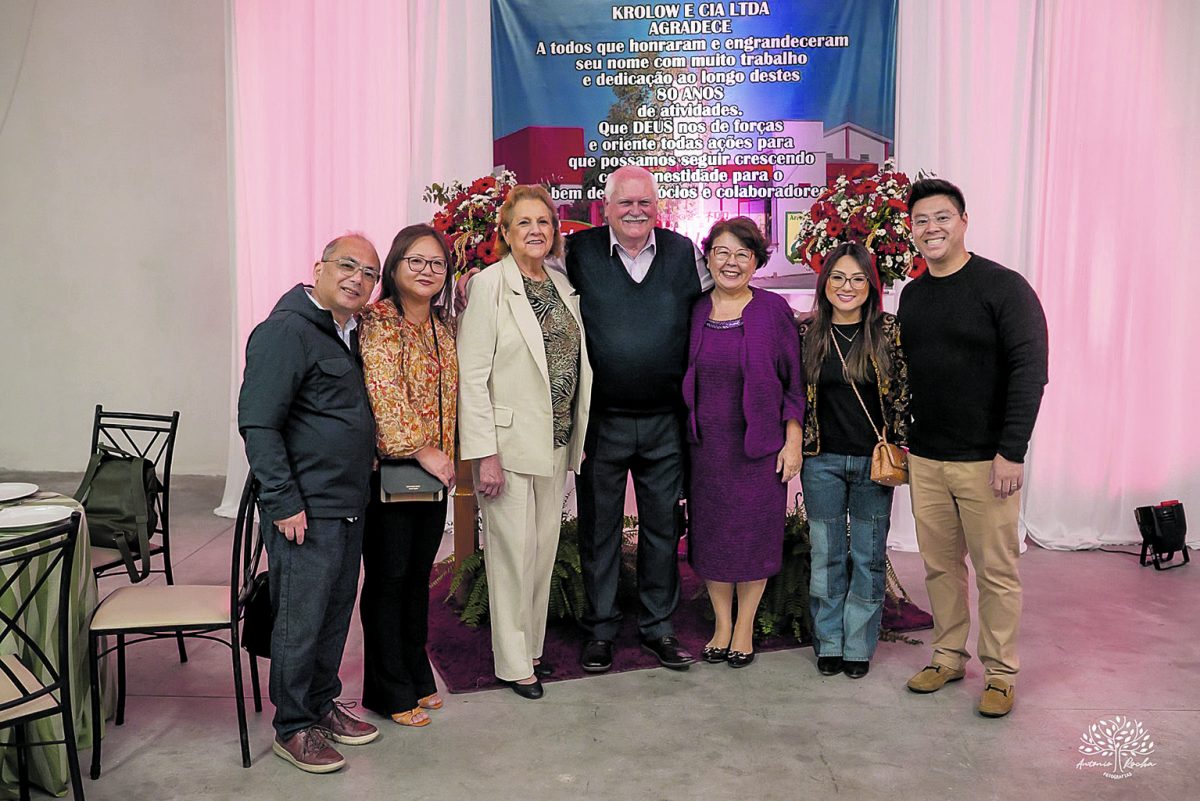 Na noite do último sábado (18), o casal Clóvis Alberto Bauer e Maria da Graça Krolow Bauer recebeu para um jantar festivo vários clientes, funcionários e amigos para a comemoração do aniversário de 80 anos do Engenho Krolow. Evento muito bem organizado, recebeu a presença de parceiros de São Paulo, como o grupo de japoneses, que divulga o arroz da empresa pelotense na comunidade japonesa, na capital paulista, através da rede Sacolão de São Paulo.
