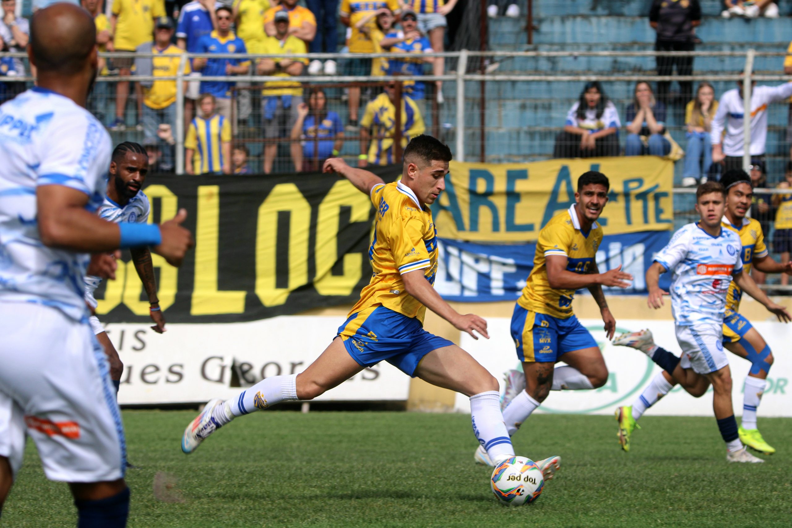 O cenário do jogo só mudou aos 31, com a entrada de Otávio no lugar de Ferraz. Com isso, o técnico Alessandro Telles efetivou Jean Roberto como centroavante, transformou o Ermel em meia e colocou o camisa 20 na ponta direita. A partir daí, o Áureo-Cerúleo começou a trocar mais passes e pressionar, mas sem efetividade. Aos 34, Pedra falhou, Otávio invadiu e bateu para grande defesa de Enzo. Um minuto depois, Jean Roberto também tentou e parou no goleiro.