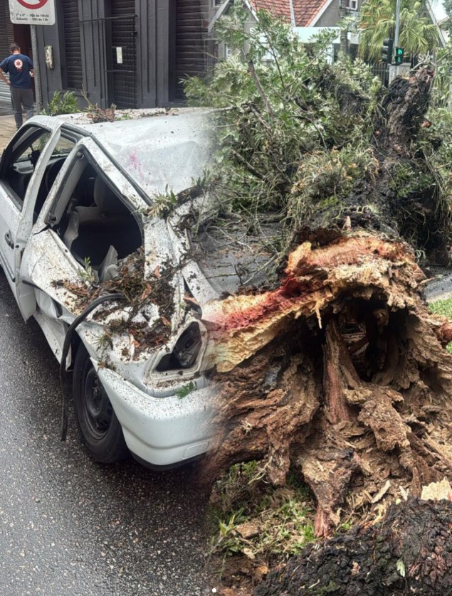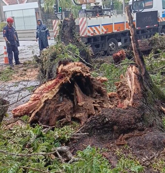 Conforme imagens do local, a árvore apresentava a base comprometida, com estrutura interna oca e partes apodrecidas. Após a passagem do ciclone extratropical pela cidade, que já acumula mais de 200 milímetros de chuva nos últimos dias, além de ventos fortes, a estrutura teria ficado ainda mais fragilizada, o que pode ter contribuído para o tombamento.