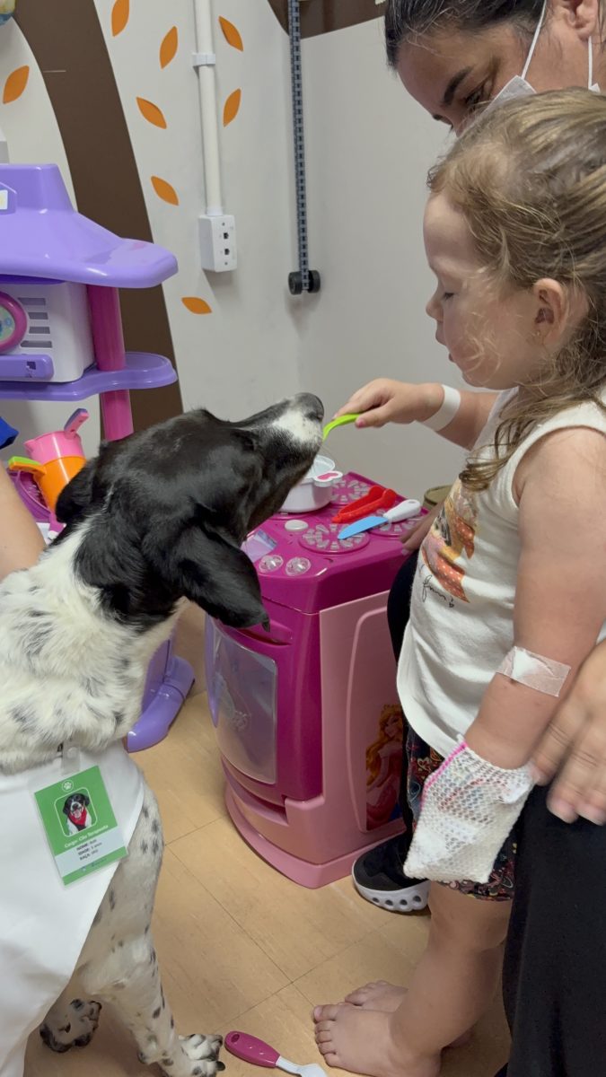 O protagonista do encerramento da Pet Terapia de 2025 foi o cão Bob que, acompanhado por sua tutora, Mayara da Silva Garcia, estudante do 7° semestre do curso de Medicina Veterinária da Universidade Federal de Pelotas, participou das ações realizadas na pediatria do Hospital Escola, levando conforto e acolhimento às crianças internadas.