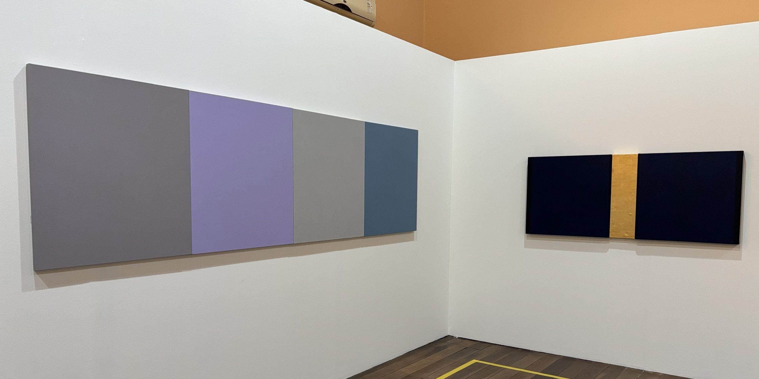 Segundo a curadora, o conjunto pictórico “transforma a sala museal numa verdadeira capela cromática, dedicada à beleza ordenada”. As telas, organizadas em módulos horizontais, exploram harmonias e dissonâncias sutis, construídas a partir de múltiplas camadas de tinta acrílica e preparação minuciosa do suporte. Em uma delas, o artista utiliza a aplicação de folhas de ouro, emprestando um metalizado que surpreende. “Tem uma harmonia sim, acho que ele lida mais com uma certa dissonância leve, não é nada que agrida, mas não são combinações muito usuais”