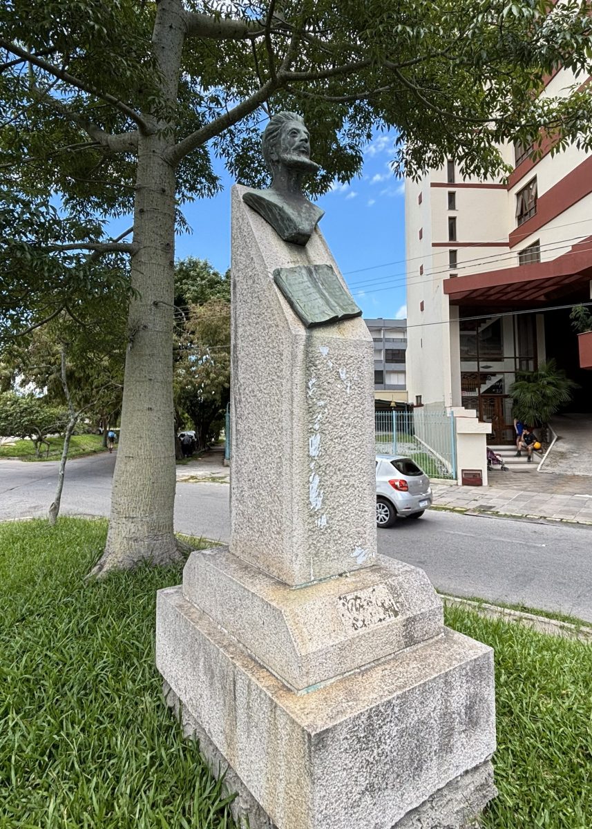 A herma foi instalada na pequena praça no entroncamento das ruas Barroso, Argolo e avenida Ferreira Viana. Segundo historiadores da época, este seria o local mais próximo de onde o corpo do poeta foi encontrado em 19 de junho de 1888. Além do busto, há um livro aberto com versos do poeta que diz: “Talvez tu leias meus versos/Ao longo, onde quer que estejas/E neles, descanso, vejas/Uns traços de quem chorou. A inauguração, no final de dezembro de 1935, contou com a presença de autoridades civis e religiosas, bem como intelectuais