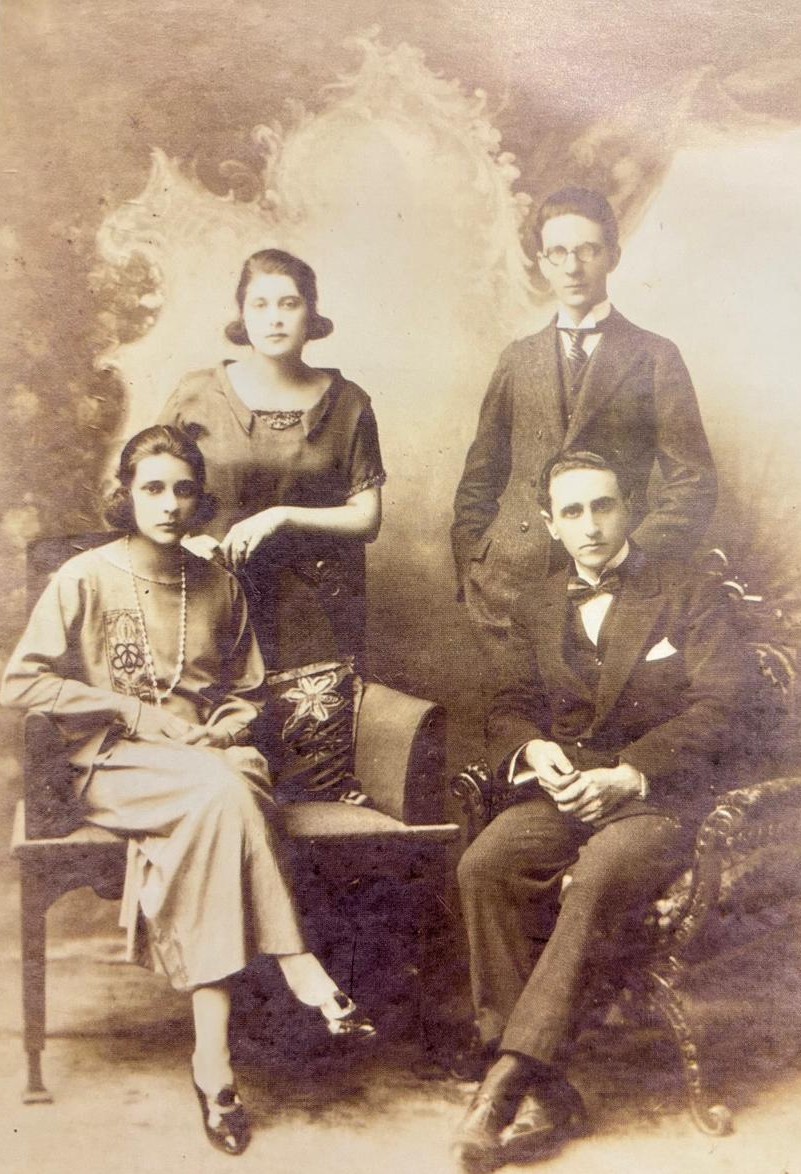 Abreu, sentado, ao lado da soprano Lourdes Nascimento, e juntamente com Manoel Fagundes e Marília Souza Soares; juntos eles compunham um quarteto vocal, em 1922 (Foto: Reprodução)
