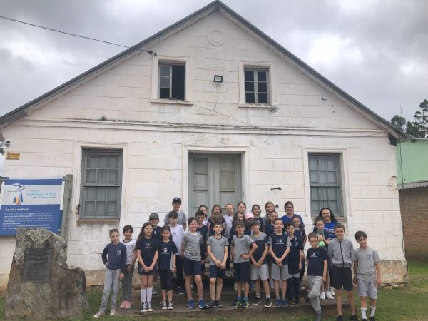 “Hoje não é mais uma escola, hoje a casa faz parte, junto da comunidade evangélica da coxilha do Barão”, explica o escritor Rodrigo Seefeldt, guia rural do projeto Caminho Pomerano São Lourenço do Sul.