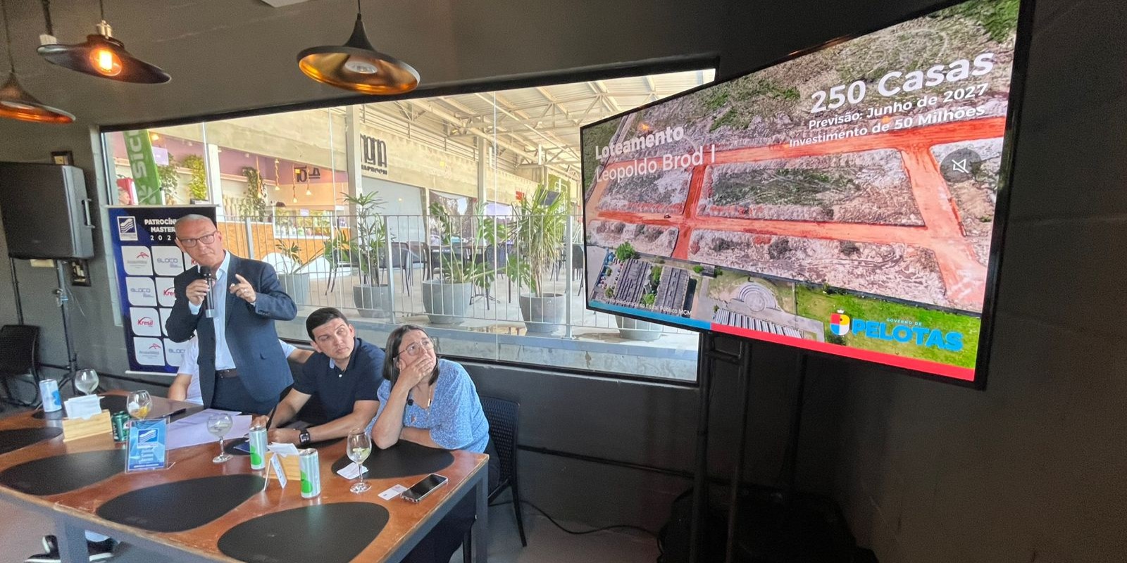 Pelotas deverá entregar 1.250 casas e apartamentos até o final de 2027. O anúncio foi feito pelo secretário de Habitação e Regularização Fundiária, Marcos Ferreira, o Marcola, durante reunião-almoço do Sindicato das Indústrias da Construção de Pelotas e Região (Sinduscon), realizada nesta terça-feira (3) no Neptunia Restaurante, no bairro Quartier.